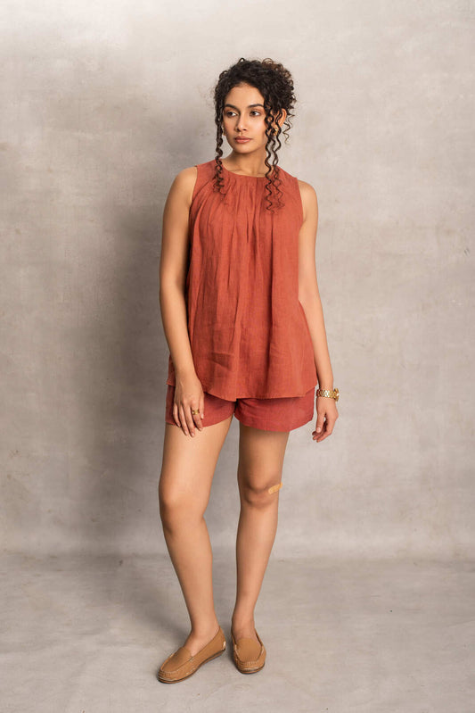 Ira- Pleated Top in Terracotta