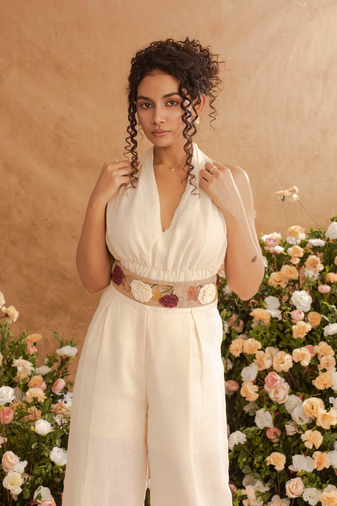 Bold yet effortless, the Kiara Halter Neck Top features a sculpted halter neckline that frames the shoulders with a clean, modern edge. It embraces the form before unfolding into a soft, architectural flare—shaping, not restricting. In Pearl and Soot, this top is made for the woman who wears her individuality with confidence and allows her style to speak for itself.